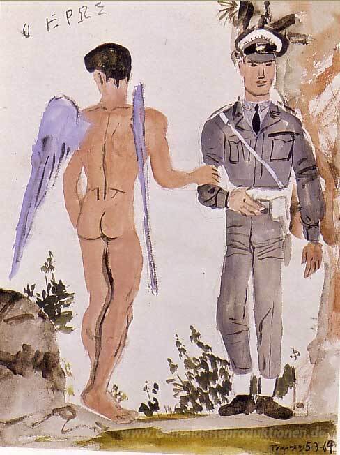 Wir bieten Ihnen eine handgefertigte Reproduktion auf Leinwand des berühmten Kunstwerks 'Militärpolizist Arretierung des Geistes' von Yiannis Tsaroychis, aus dem Reproduktionsmuseum.