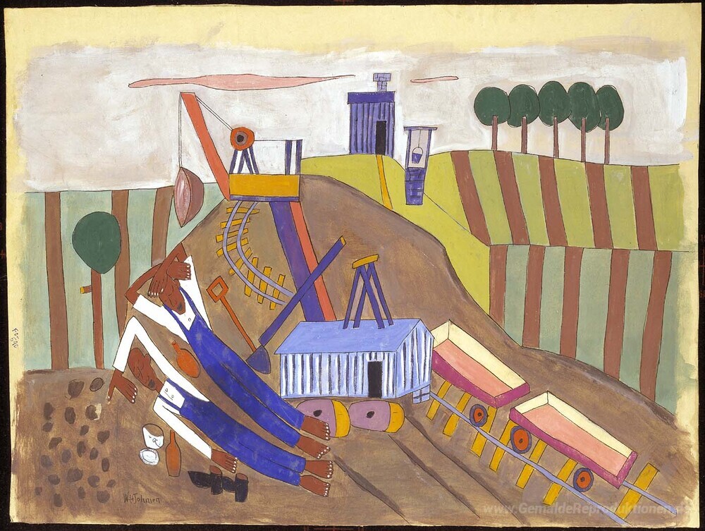 Willkommen in unserer exquisiten Sammlung von Ölgemälden, die das Herzstück jeder Einrichtung bilden. Entdecken Sie die meisterhaften Werke von William H. Johnson, einem herausragenden Künstler, dessen einzigartiger Stil Elemente der modernen Kunst mit traditioneller afrikanischer Folklore vereint. Sein Gemälde Mittagsrast fängt die Essenz des alltäglichen Lebens und der kulturellen Identität ein, indem es leuchtende Farben und dynamische Kompositionen miteinander verbindet.
