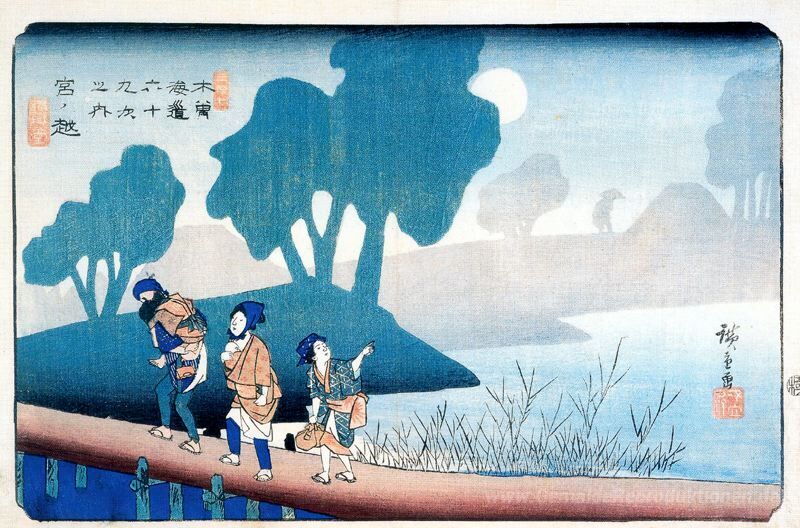 Wir bieten Ihnen eine handgefertigte Reproduktion auf Leinwand des berühmten Kunstwerks 'Miyanokoshi' von Hiroshige, aus dem Reproduktionsmuseum.