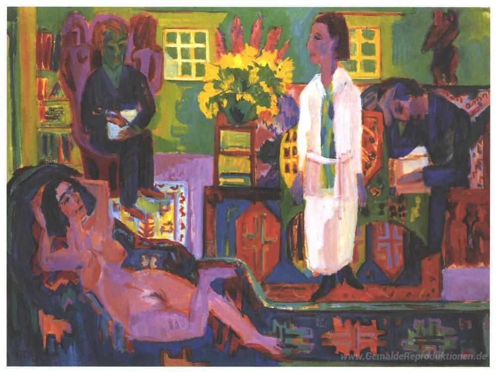 Wir bieten Ihnen eine handgefertigte Reproduktion auf Leinwand des berühmten Kunstwerks 'Moderne Bohème' von Ernst Ludwig Kirchner, aus dem Reproduktionsmuseum.
