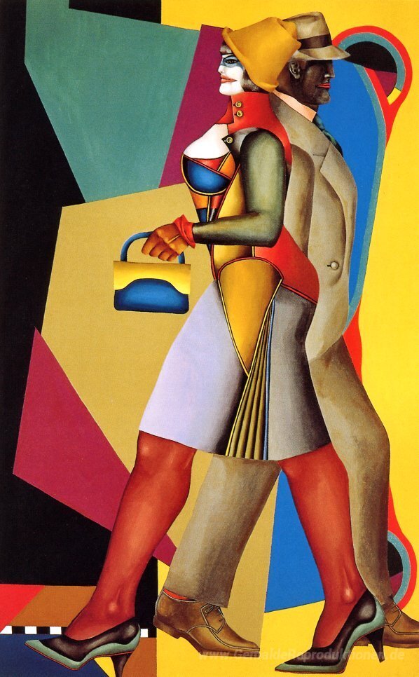 Wir bieten Ihnen eine handgefertigte Reproduktion auf Leinwand des berühmten Kunstwerks 'Mond über Alabama' von Richard Lindner, aus dem Reproduktionsmuseum.