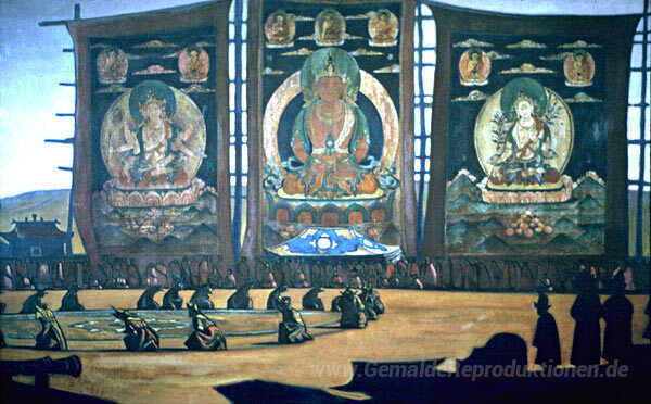 Wir bieten Ihnen eine handgefertigte Reproduktion auf Leinwand des berühmten Kunstwerks 'Mongolische Tsam' von Nicholas Roerich, aus dem Reproduktionsmuseum.