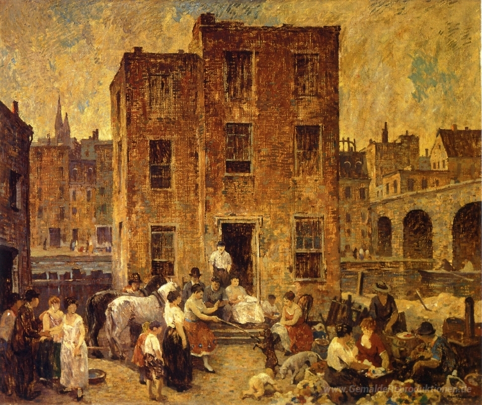 Wir bieten Ihnen eine handgefertigte Reproduktion auf Leinwand des berühmten Kunstwerks 'Montebanks und Diebe' von Robert Spencer, aus dem Reproduktionsmuseum.
