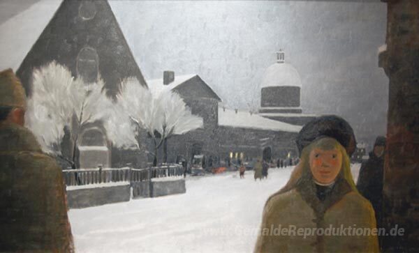 Wir bieten Ihnen eine handgefertigte Reproduktion auf Leinwand des berühmten Kunstwerks 'Montréal il y a temps' von Jean Paul Lemieux, aus dem Reproduktionsmuseum.