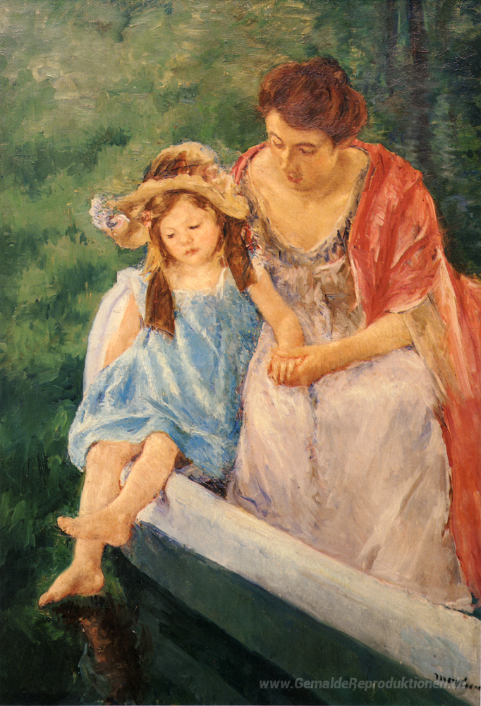Wir bieten Ihnen eine handgefertigte Reproduktion auf Leinwand des berühmten Kunstwerks 'Mutter und Kind in einem Boot' von Mary Cassatt, aus dem Reproduktionsmuseum.
