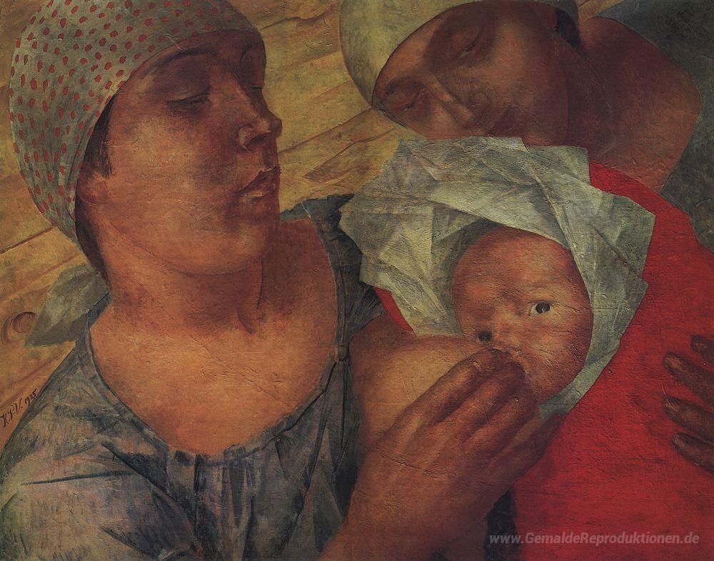 Wir bieten Ihnen eine handgefertigte Reproduktion auf Leinwand des berühmten Kunstwerks 'Mutterschaft' von Kuzma Petrov-Vodkin, aus dem Reproduktionsmuseum.