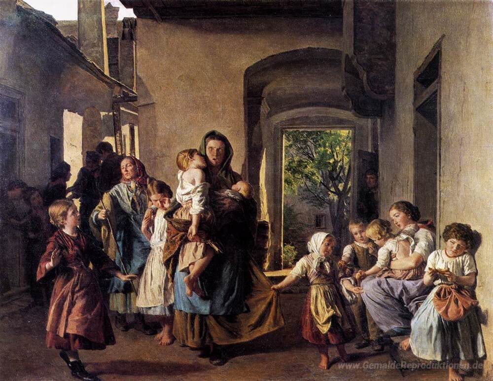 Wir bieten Ihnen eine handgefertigte Reproduktion auf Leinwand des berühmten Kunstwerks 'Nach der Einziehung' von Ferdinand Georg Waldmüller, aus dem Reproduktionsmuseum.