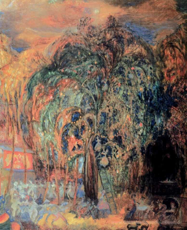 Wir bieten Ihnen eine handgefertigte Reproduktion auf Leinwand des berühmten Kunstwerks 'Nachtfestival' von Serge Sudeikin, aus dem Reproduktionsmuseum.