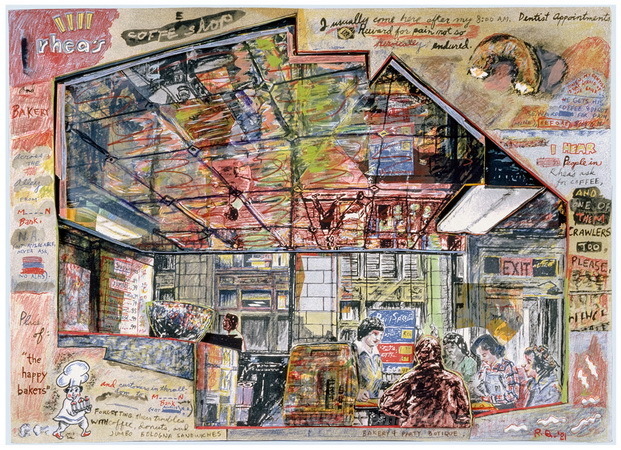 Wir bieten Ihnen eine handgefertigte Reproduktion auf Leinwand des berühmten Kunstwerks 'Nandus Bakery' von Robert Qualters, aus dem Reproduktionsmuseum.