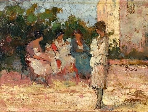 Wir bieten Ihnen eine handgefertigte Reproduktion auf Leinwand des berühmten Kunstwerks 'Nannies in den Park' von Theophrastos Triantafyllidis, aus dem Reproduktionsmuseum.