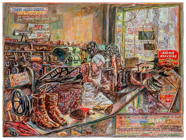 Wir bieten Ihnen eine handgefertigte Reproduktion auf Leinwand des berühmten Kunstwerks 'Nicks Schuhmacher' von Robert Qualters, aus dem Reproduktionsmuseum.