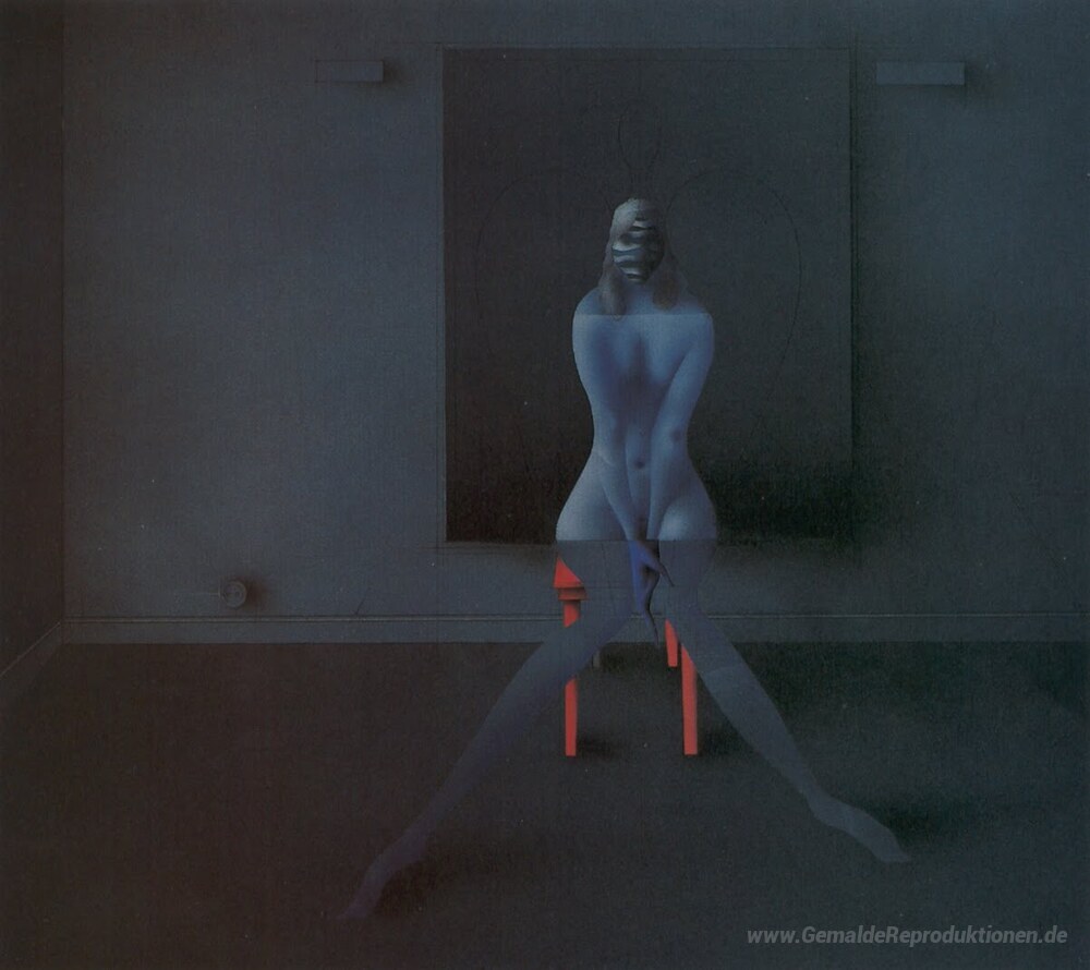 Wir bieten Ihnen eine handgefertigte Reproduktion auf Leinwand des berühmten Kunstwerks 'No Angel' von Paul Wunderlich, aus dem Reproduktionsmuseum.