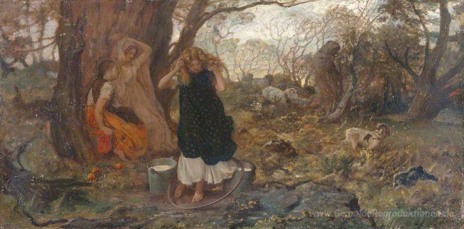 Wir bieten Ihnen eine handgefertigte Reproduktion auf Leinwand des berühmten Kunstwerks 'Nur eine Dusche' von George Hemming Mason, aus dem Reproduktionsmuseum.