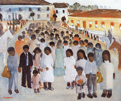 Wir bieten Ihnen eine handgefertigte Reproduktion auf Leinwand des berühmten Kunstwerks 'O enterro de Criança em São João del Rey' von Jose Pancetti, aus dem Reproduktionsmuseum.