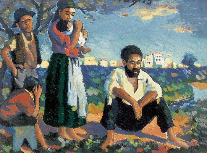 Wir bieten Ihnen eine handgefertigte Reproduktion auf Leinwand des berühmten Kunstwerks 'Obdachlos' von George Pemba, aus dem Reproduktionsmuseum.