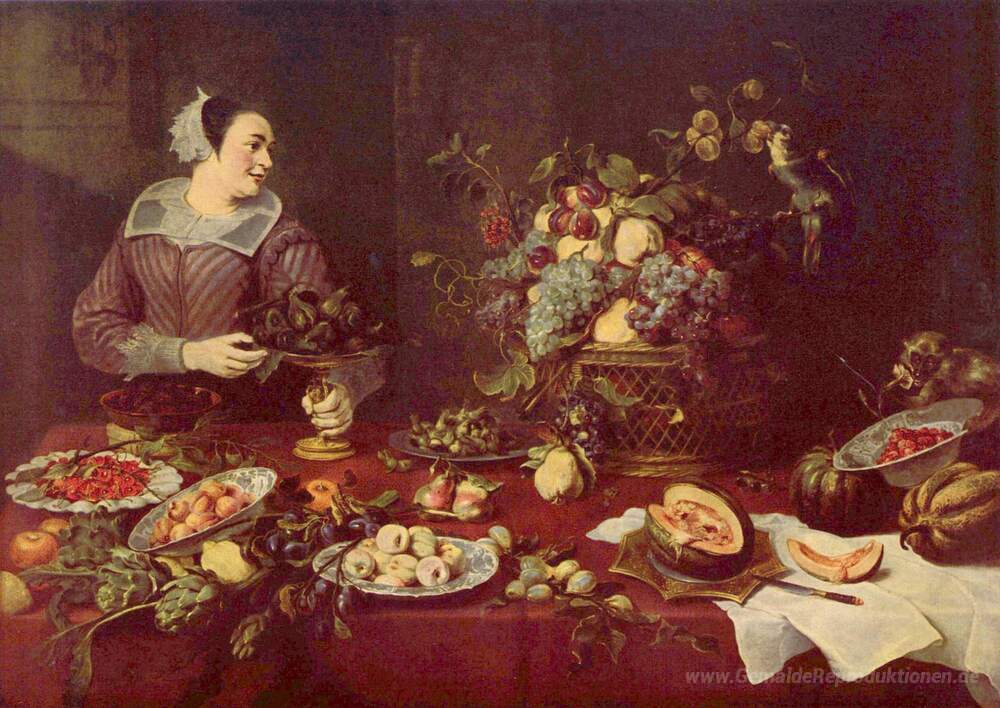 Wir bieten Ihnen eine handgefertigte Reproduktion auf Leinwand des berühmten Kunstwerks 'Obsthändler' von Frans Snyders, aus dem Reproduktionsmuseum.