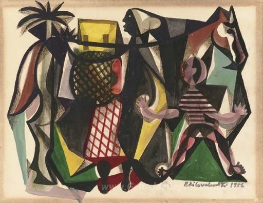 Wir bieten Ihnen eine handgefertigte Reproduktion auf Leinwand des berühmten Kunstwerks 'Ohne Titel' von Emiliano Di Cavalcanti, aus dem Reproduktionsmuseum.