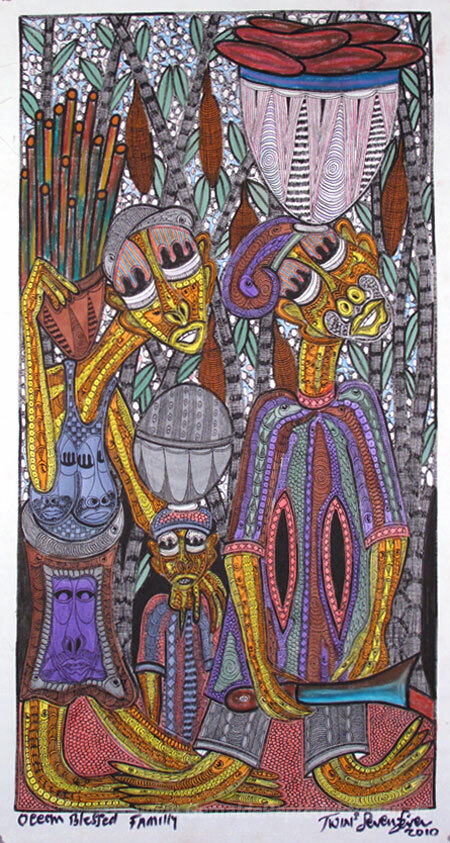 Wir bieten Ihnen eine handgefertigte Reproduktion auf Leinwand des berühmten Kunstwerks 'Ozean Gesegnete Familie' von Twins Seven Seven, aus dem Reproduktionsmuseum.