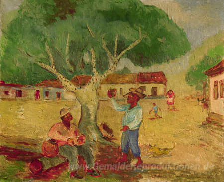 Wir bieten Ihnen eine handgefertigte Reproduktion auf Leinwand des berühmten Kunstwerks 'Pé de jabuticaba' von Anita Malfatti, aus dem Reproduktionsmuseum.