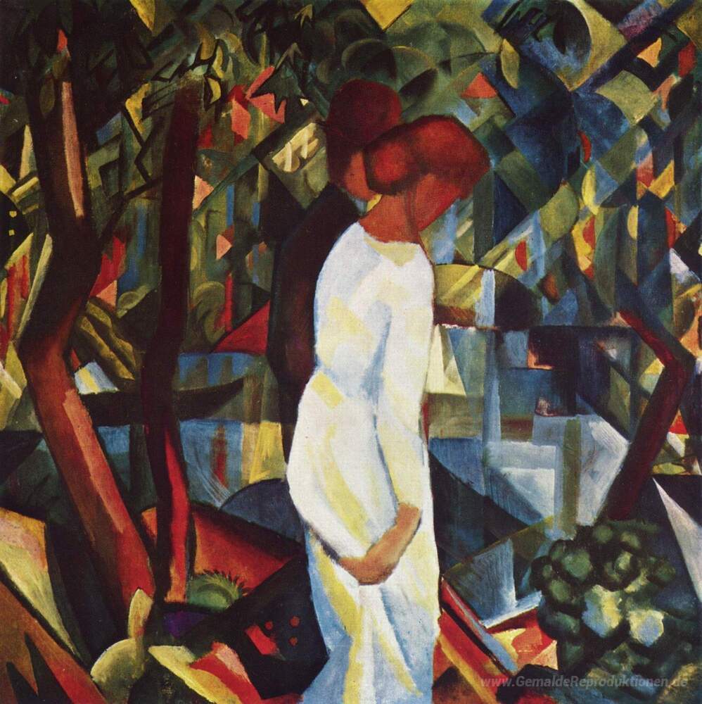 Wir bieten Ihnen eine handgefertigte Reproduktion auf Leinwand des berühmten Kunstwerks 'Paar im Wald' von August Macke, aus dem Reproduktionsmuseum.