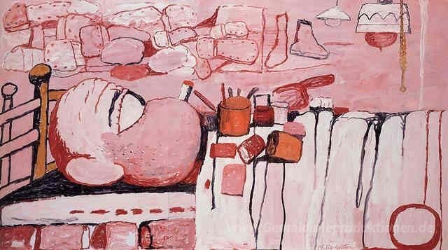 Wir bieten Ihnen eine handgefertigte Reproduktion auf Leinwand des berühmten Kunstwerks 'Painter in Bed' von Philip Guston, aus dem Reproduktionsmuseum.