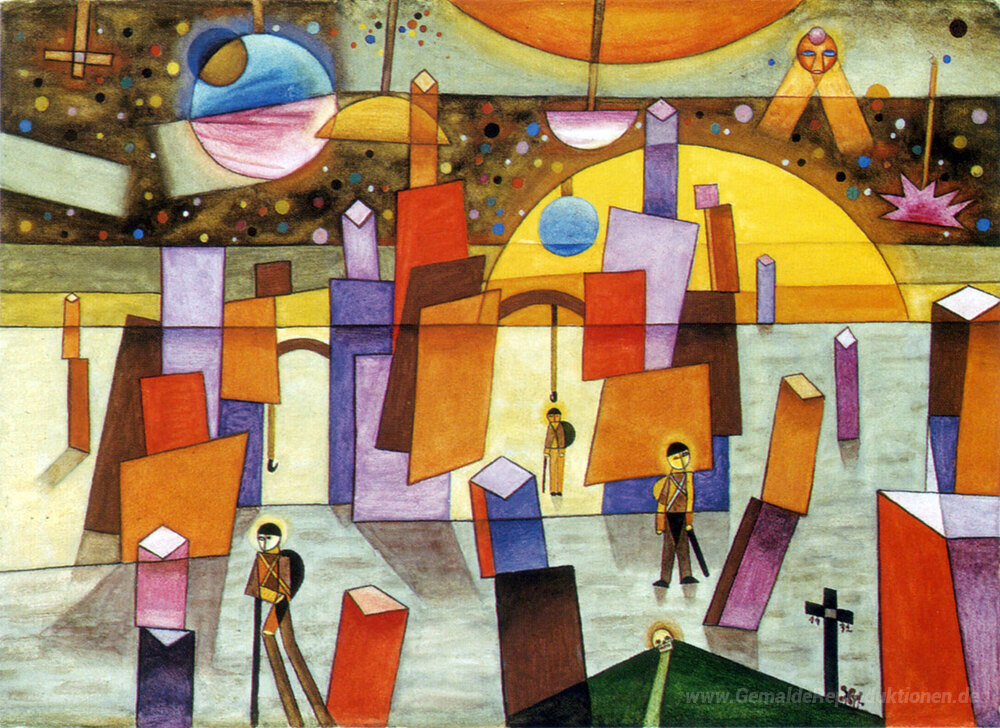 Ölgemälde sind nicht nur Ausdruck künstlerischer Kreativität, sondern auch zeitlose Investitionen in die Schönheit und Atmosphäre Ihres Zuhauses. Jedes Gemälde erzählt eine eigene Geschichte, und die Werke von Xul Solar repräsentieren einen einzigartigen stilistischen Ansatz, der in der Kunstwelt beispiellos ist. Sein Werk Palacios de Bria verbindet mystische Elemente mit geometrischen Formen und lebendigen Farben, die den Betrachter in eine andere Dimension entführen.