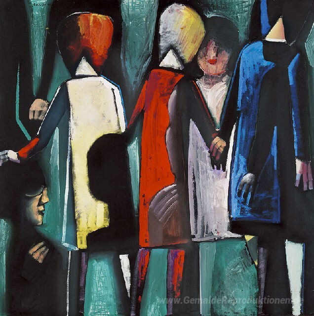 Wir bieten Ihnen eine handgefertigte Reproduktion auf Leinwand des berühmten Kunstwerks 'Parade' von Charles Blackman, aus dem Reproduktionsmuseum.