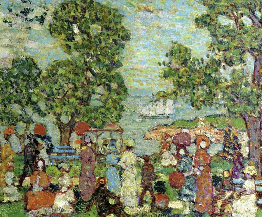 Willkommen in der faszinierenden Welt der Ölgemälde, wo jeder Pinselstrich eine Geschichte erzählt und die Atmosphäre Ihres Raums verwandelt. Unser herausragendes Kunstwerk, Park-Szene NeBay, entstammt der kreativen Feder des talentierten Künstlers Maurice Prendergast. Dieser bedeutende Impressionist ist bekannt für seine lebendigen Farben und dynamischen Kompositionen, die den Betrachter in die Szenerie hineinziehen und Emotionen wecken.