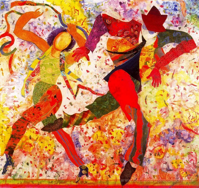 Wir bieten Ihnen eine handgefertigte Reproduktion auf Leinwand des berühmten Kunstwerks 'Pas de deux' von Miriam Schapiro, aus dem Reproduktionsmuseum.