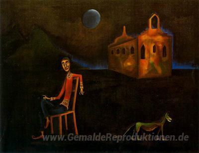 Wir bieten Ihnen eine handgefertigte Reproduktion auf Leinwand des berühmten Kunstwerks 'Personatge Assegut' von Joan Ponc, aus dem Reproduktionsmuseum.