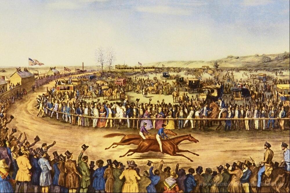 Wir bieten Ihnen eine handgefertigte Reproduktion auf Leinwand des berühmten Kunstwerks 'Peytona und Mode' von Currier and Ives, aus dem Reproduktionsmuseum.