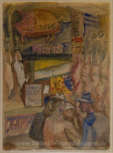 Wir bieten Ihnen eine handgefertigte Reproduktion auf Leinwand des berühmten Kunstwerks 'Pike Street Market' von Mark Tobey, aus dem Reproduktionsmuseum.