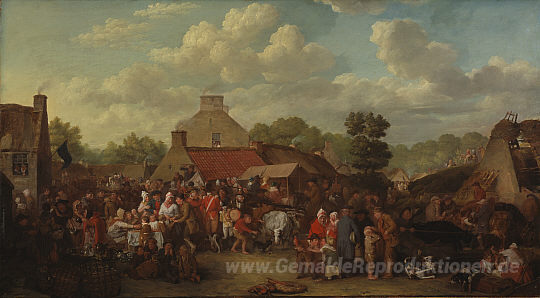 Wir bieten Ihnen eine handgefertigte Reproduktion auf Leinwand des berühmten Kunstwerks 'Pitlessie Messe' von David Wilkie, aus dem Reproduktionsmuseum.