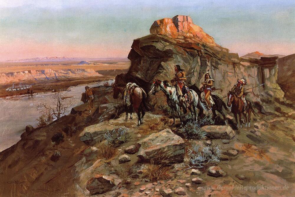 Entdecken Sie die faszinierende Welt der Ölgemälde mit unserem handverlesenen Sortiment aus einzigartigen Kunstwerken. Insbesondere das Meisterwerk Planung der Angriff von Charles M. Russell zieht alle Blicke auf sich. Russell, bekannt für seine lebendigen Darstellungen des amerikanischen Westens, kombiniert in diesem Gemälde beeindruckende technische Fertigkeiten mit einer tiefen Leidenschaft für die Wildnis und die Kultur der Native Americans. Die warmen Farben und dynamischen Kompositionen verleihen jedem Raum eine besondere Atmosphäre, die den Betrachter in ihren Bann zieht.