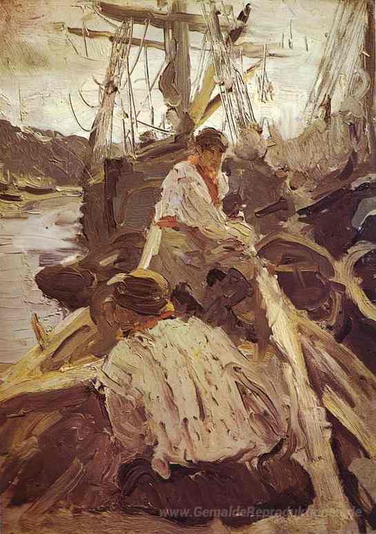 Wir bieten Ihnen eine handgefertigte Reproduktion auf Leinwand des berühmten Kunstwerks 'Pomoren' von Valentin Serov, aus dem Reproduktionsmuseum.