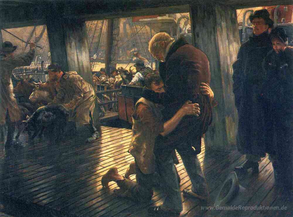 Willkommen in der faszinierenden Welt der Ölgemälde, wo Kunst auf Emotionen trifft. Eines der herausragenden Werke, das unsere Sammlung bereichert, ist „Prodigal Son, The Return“ von dem renommierten Künstler James Tissot. Tissot, bekannt für seinen eindrucksvollen Realismus und seine Fähigkeit, menschliche Emotionen einzufangen, bringt mit diesem meisterhaften Gemälde die bewegende Geschichte der Versöhnung und Wiedergutmachung zum Leben.