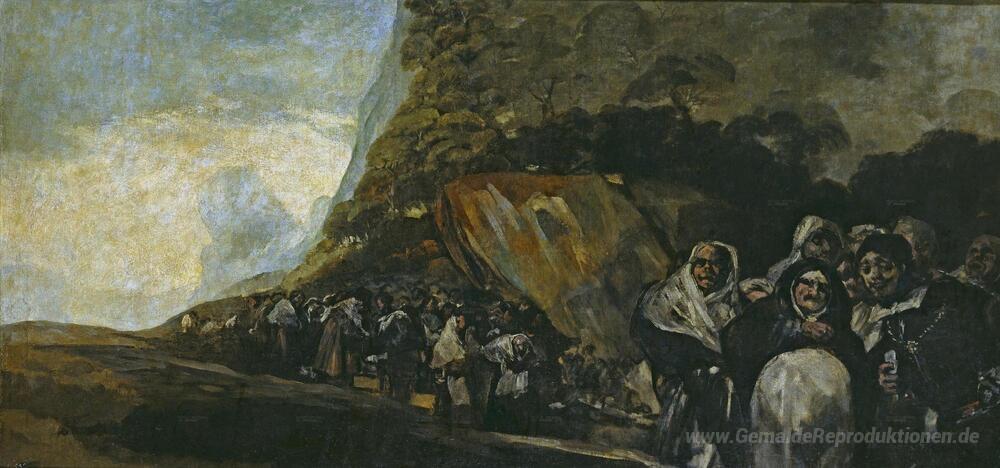 Wir bieten Ihnen eine handgefertigte Reproduktion auf Leinwand des berühmten Kunstwerks 'Promenade des Heiligen Offiziums' von Francisco Goya, aus dem Reproduktionsmuseum.