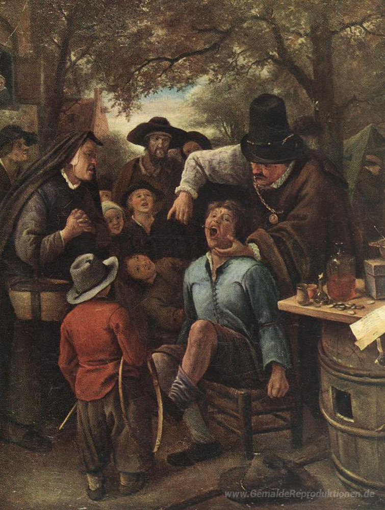Wir bieten Ihnen eine handgefertigte Reproduktion auf Leinwand des berühmten Kunstwerks 'Quackdoctor' von Jan Steen, aus dem Reproduktionsmuseum.