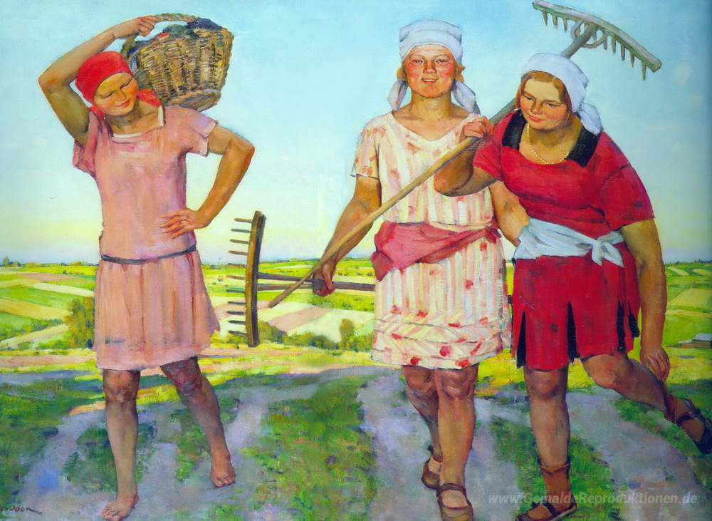 Wir bieten Ihnen eine handgefertigte Reproduktion auf Leinwand des berühmten Kunstwerks 'Rückkehr von der Arbeit' von Konstantin Yuon, aus dem Reproduktionsmuseum.