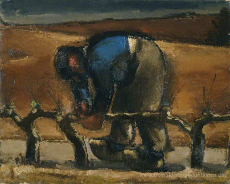 Wir bieten Ihnen eine handgefertigte Reproduktion auf Leinwand des berühmten Kunstwerks 'Rebschnitt' von Josef Herman, aus dem Reproduktionsmuseum.