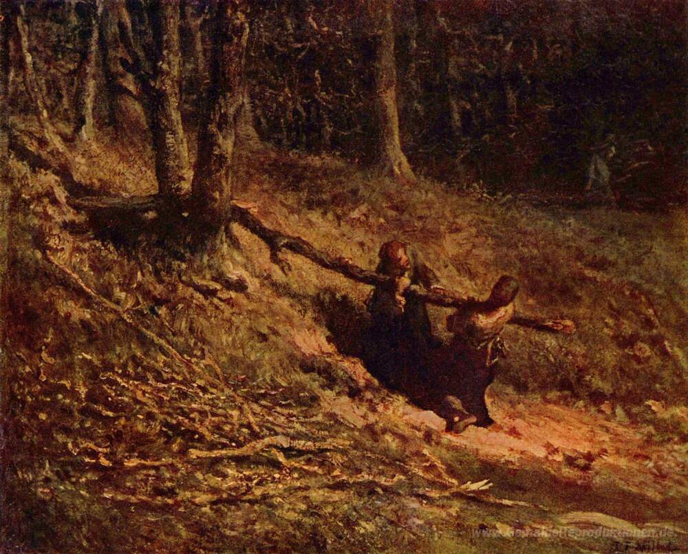 Wir bieten Ihnen eine handgefertigte Reproduktion auf Leinwand des berühmten Kunstwerks 'Reisigsammlern' von Jean-Francois Millet, aus dem Reproduktionsmuseum.