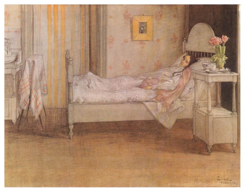 Wir bieten Ihnen eine handgefertigte Reproduktion auf Leinwand des berühmten Kunstwerks 'Rekonvaleszenz' von Carl Larsson, aus dem Reproduktionsmuseum.
