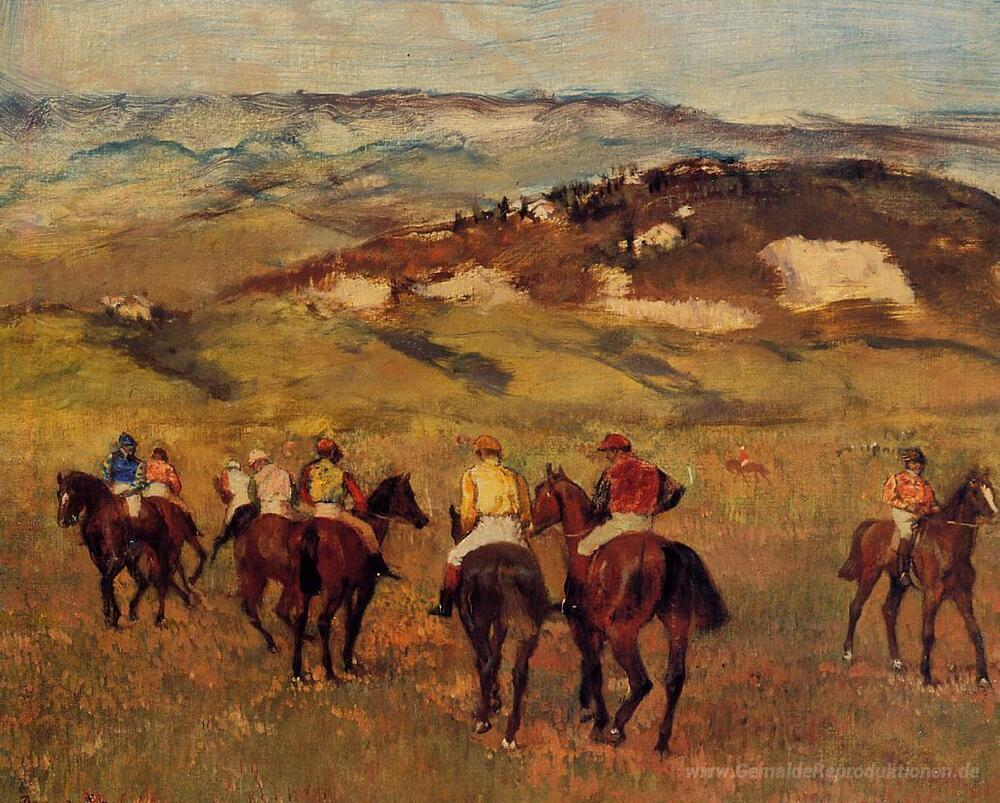 Wir bieten Ihnen eine handgefertigte Reproduktion auf Leinwand des berühmten Kunstwerks 'Rennpferde' von Edgar Degas, aus dem Reproduktionsmuseum.