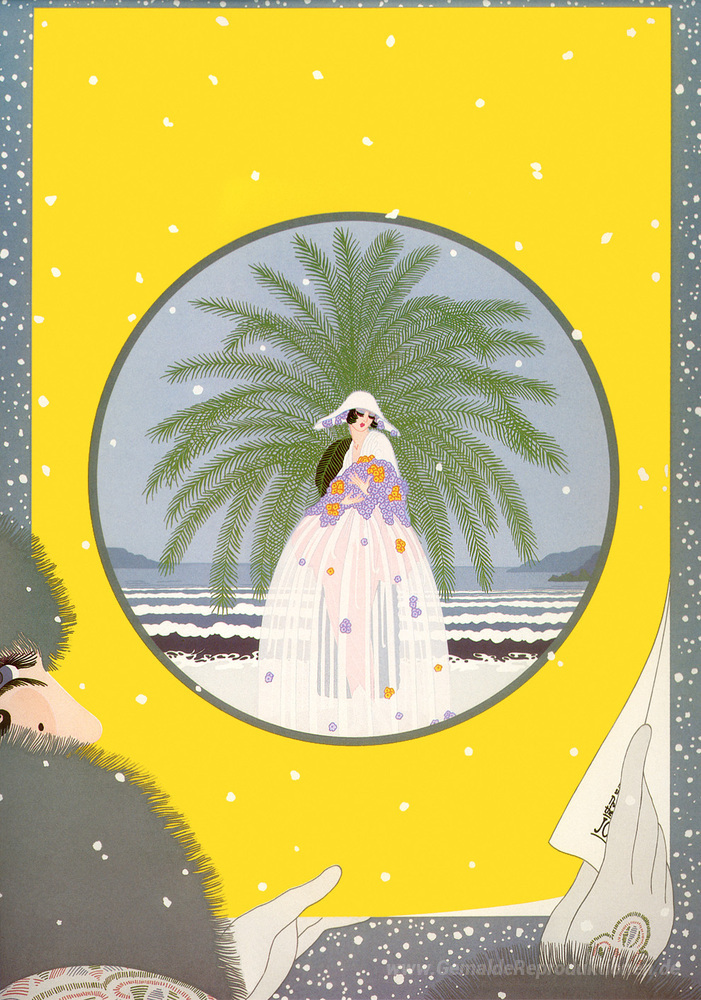Wir bieten Ihnen eine handgefertigte Reproduktion auf Leinwand des berühmten Kunstwerks 'Riviera' von Erte, aus dem Reproduktionsmuseum.