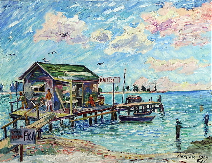 Wir bieten Ihnen eine handgefertigte Reproduktion auf Leinwand des berühmten Kunstwerks 'Schnell Frozen Fish, Florida' von David Burliuk, aus dem Reproduktionsmuseum.