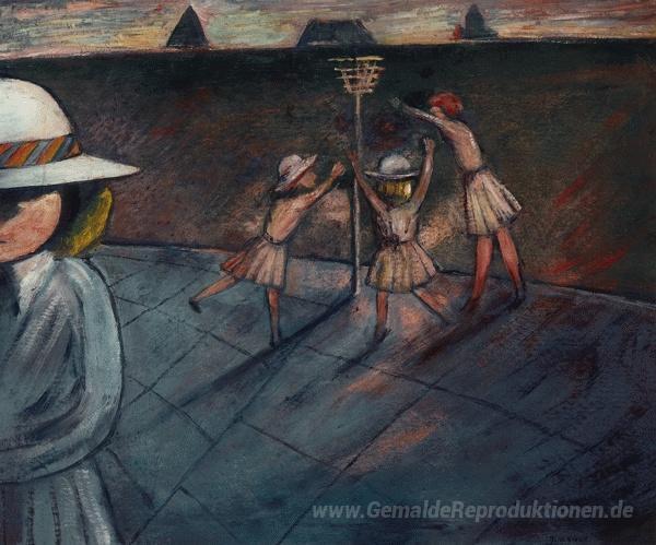 Wir bieten Ihnen eine handgefertigte Reproduktion auf Leinwand des berühmten Kunstwerks 'Schulmädchen am Spiel' von Charles Blackman, aus dem Reproduktionsmuseum.
