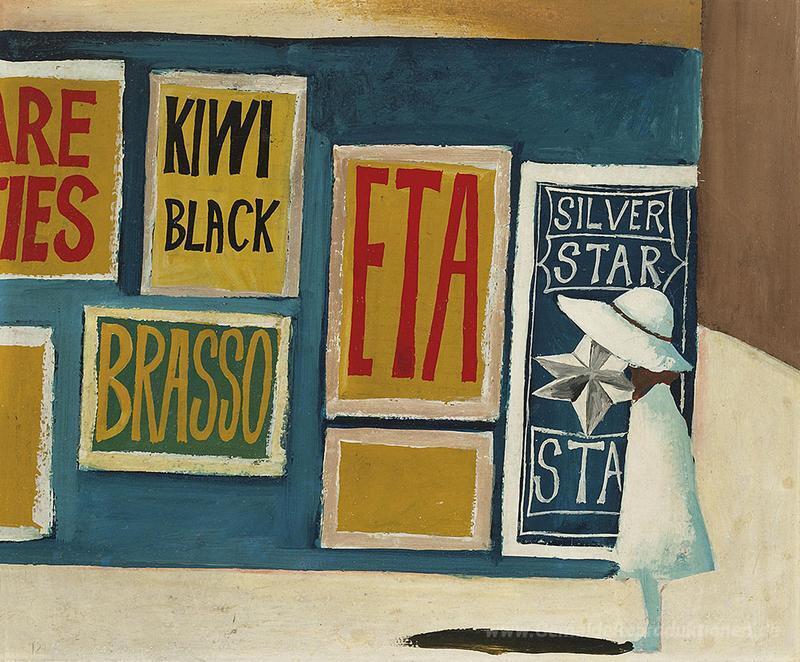 Wir bieten Ihnen eine handgefertigte Reproduktion auf Leinwand des berühmten Kunstwerks 'Schulmädchen und Billboards' von Charles Blackman, aus dem Reproduktionsmuseum.