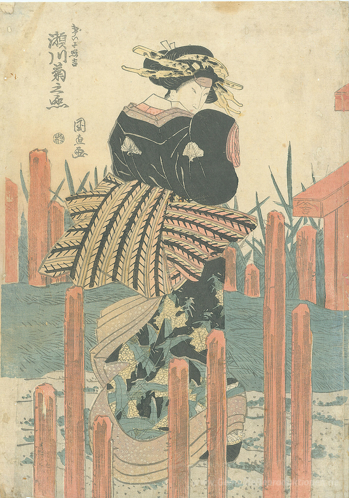 Wir bieten Ihnen eine handgefertigte Reproduktion auf Leinwand des berühmten Kunstwerks 'Segawa Kikunojo V als Onnagata' von Utagawa Toyokuni II, aus dem Reproduktionsmuseum.