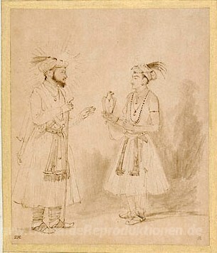 Wir bieten Ihnen eine handgefertigte Reproduktion auf Leinwand des berühmten Kunstwerks 'Shah Jahan und Dara Shikoh' von Rembrandt, aus dem Reproduktionsmuseum.