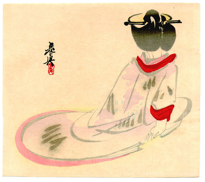 Wir bieten Ihnen eine handgefertigte Reproduktion auf Leinwand des berühmten Kunstwerks 'Sitting Lady' von Shibata Zeshin, aus dem Reproduktionsmuseum.